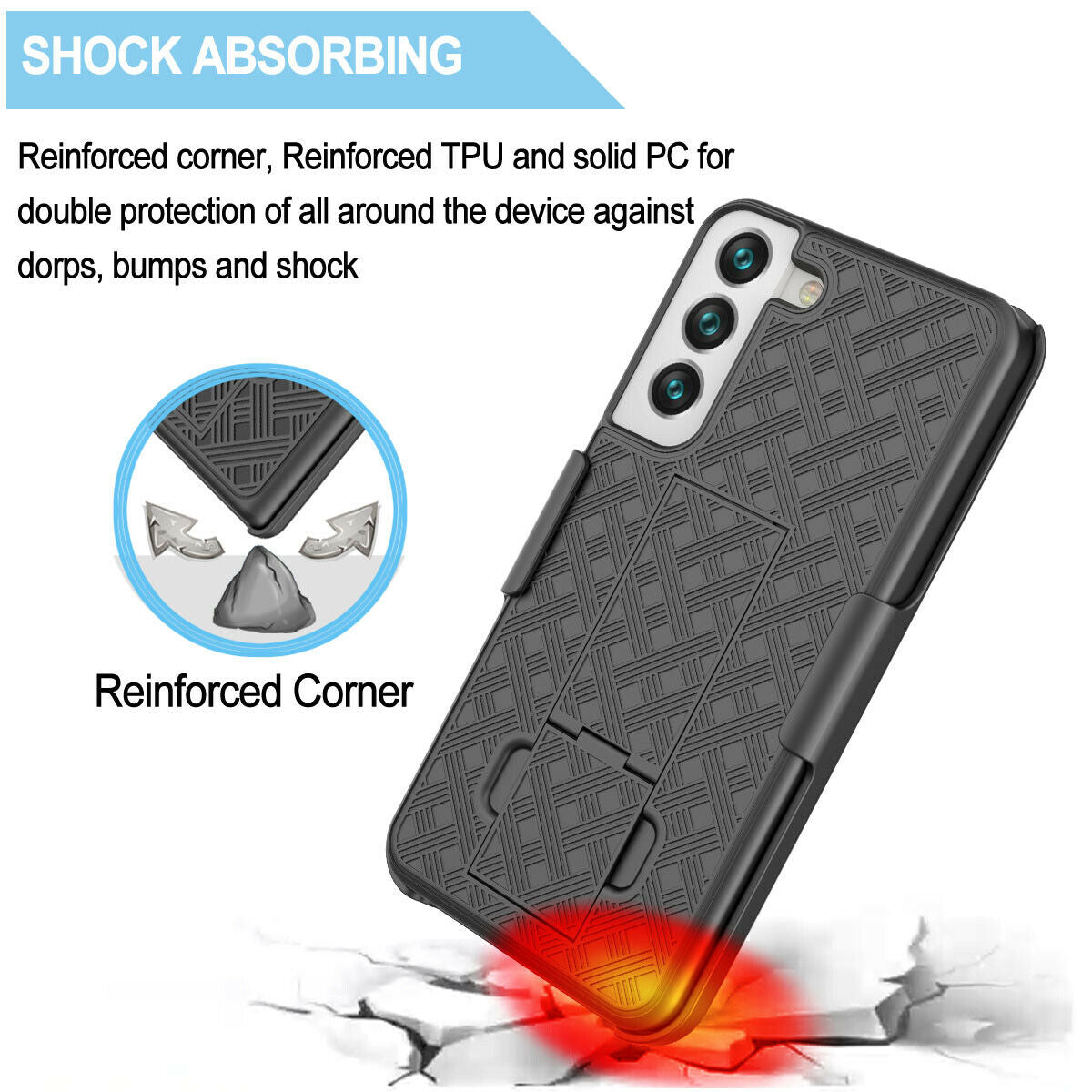- 2-in-1 carrying Solution and Unique slide-in design for ease of use. High quality shell holster case with anti slip grip design for Samsung Galaxy S22 Plus 5G (6.6").