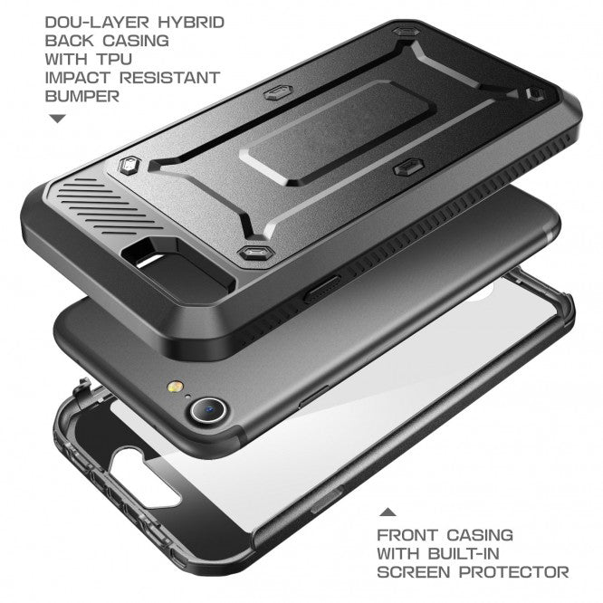 Slip your phone into this amazing Case with a built in stand + removable holster and be instantly smart, stylish, and sleek while giving ultimate protection to your new Phone. Inside, this robust case is removable from the holster for continued lightweight protection. Allowing full access to touchscreen, camera, buttons, and ports. A grade polycarbonate + Thermoplastic polyurethane for shock absorption. Front Cover with Built-in screen protector prevents scratches without compromising sensitivity. Design:designed with both protection and looks in mind, full-body Hybrid case provides shock absorption and scratch Prevention while maintaining a sporty profile. Advanced front Cover design for easy installation- Built-in screen protector without compromising sensitivity- advanced Dual-layer (PC + TPU) design provides great impact and shock resistance and prevents accidental drop, bump, and shock. Belt clip holster- easy access to all features (buttons, camera, speaker, and ports), sporty profile.Share