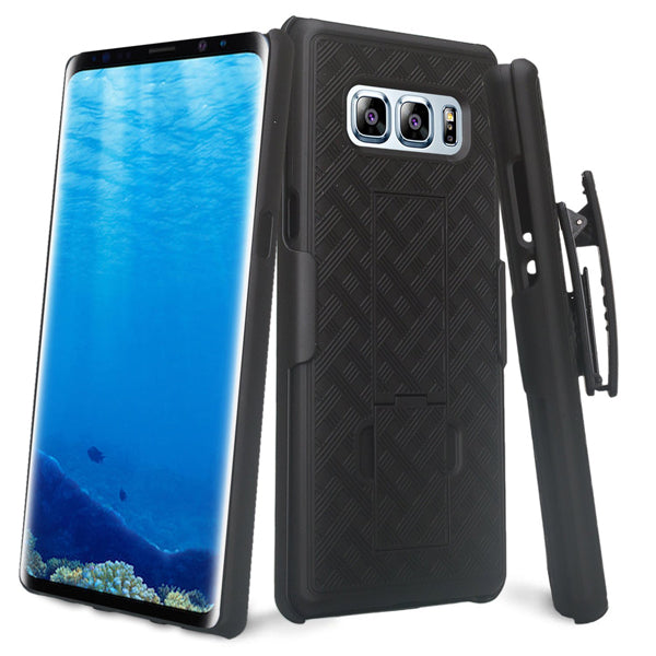 - 2-in-1 carrying Solution and Unique slide-in design for Galaxy Note8 for ease of use. High quality shell holster case with anti slip grip design.