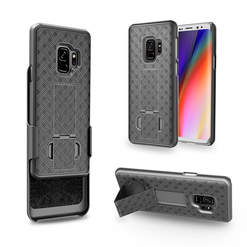 - 2-in-1 carrying Solution and Unique slide-in design for ease of use. High quality shell holster case with anti slip grip design for Samsung Galaxy S9 (5.8").