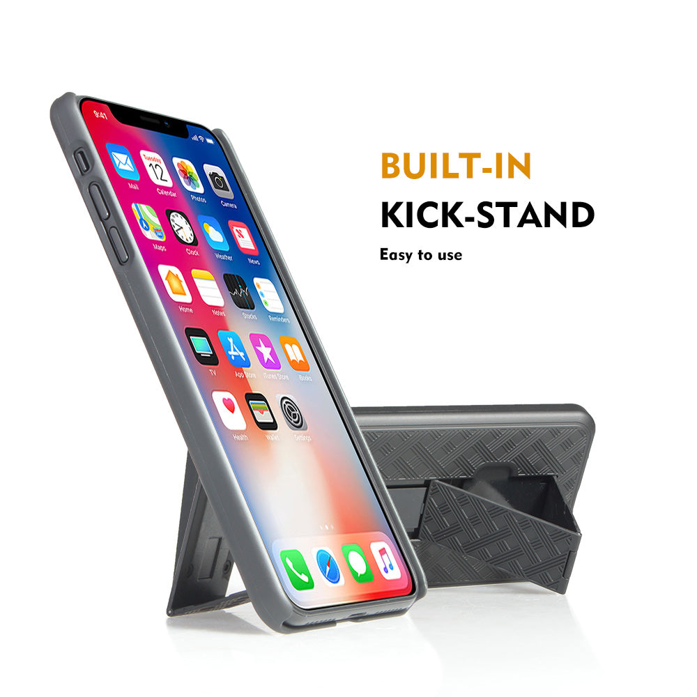 - The Durable ClikLock holster includes a sturdy belt attachment to keep your phone in place at all times and the built-In kickstand offers convenient positioning for media viewing.