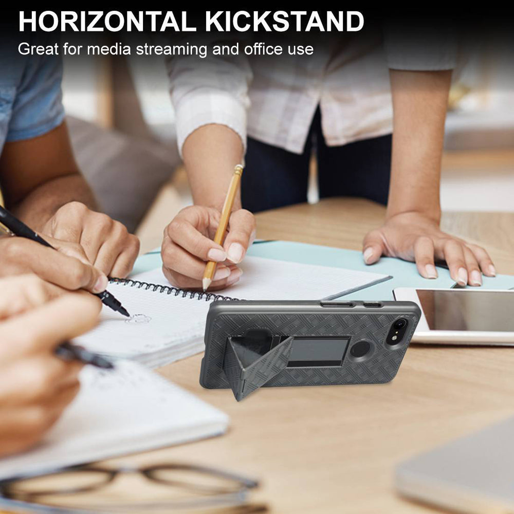 - 2-in-1 carrying Solution and unique slide-in design for ease of use for Google Pixel 3 (5.5"). High quality shell holster case with anti slip grip design.