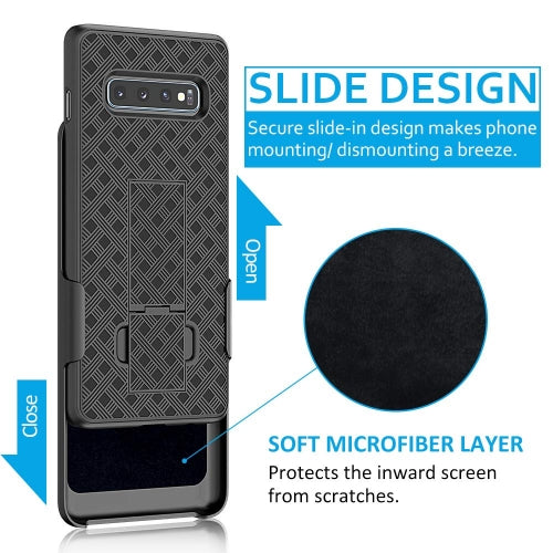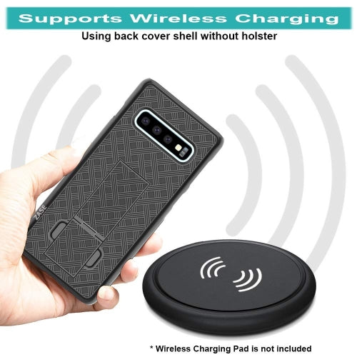 - 2-in-1 carrying Solution and Unique slide-in design for ease of use. High quality shell holster case with anti slip grip design for Samsung Galaxy S10+ (PLUS) (6.4").