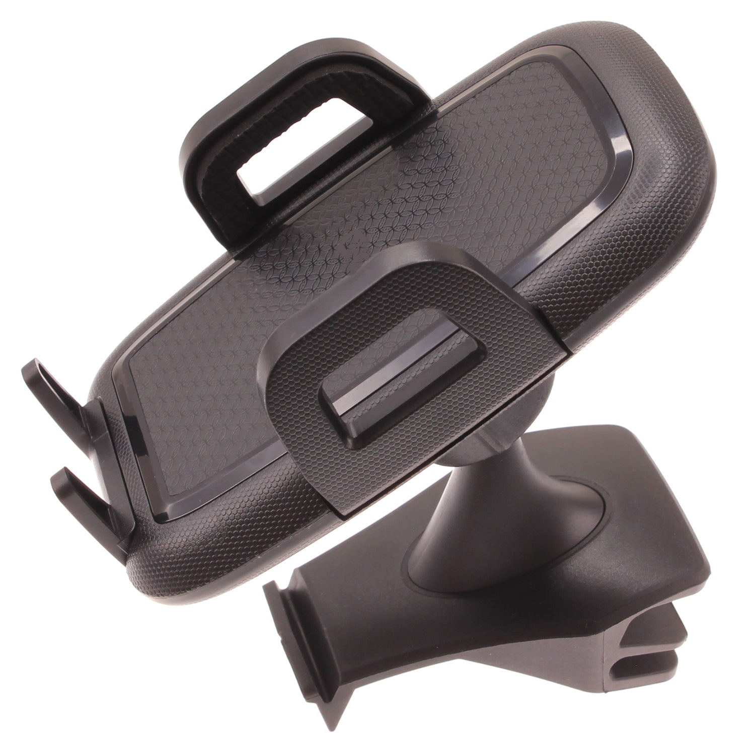 - This phone holder will securely hold your phone with confidence and with no difficulties as you drive without blocking your view of the road. Rubberized padded protective side grips and anti-slip will ensure a firm hold onto your device.