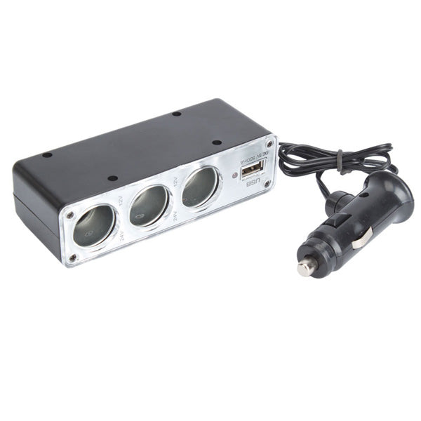 - Convert and Increase your car dc lighter from 1 to 3 sockets with one additional USB port.
