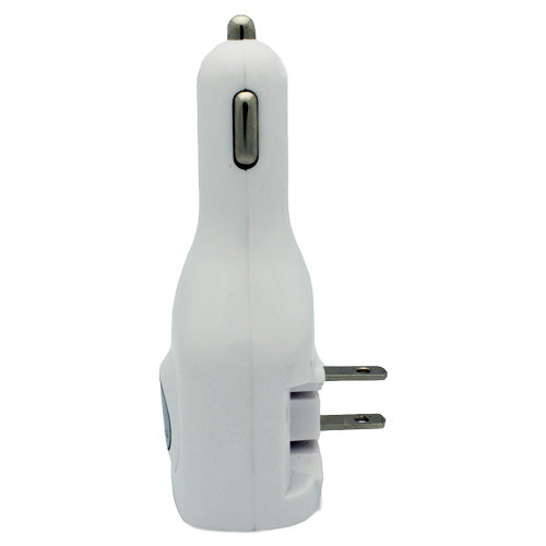 Charger doubles as a wall or car charger with folding prongs for an easy storage. You can charge two devices at the same time with dual usb sockets. This will charge two cell phones, pdas, bluetooths, tablets etc. USB Charging Cable is NOT included.Share