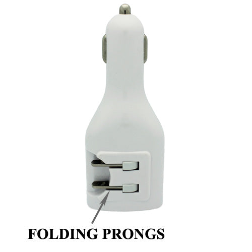 - Wall outlet prongs fold for easy storage and travel. Recharge on the go by harnessing power from your car with a lighter adapter.