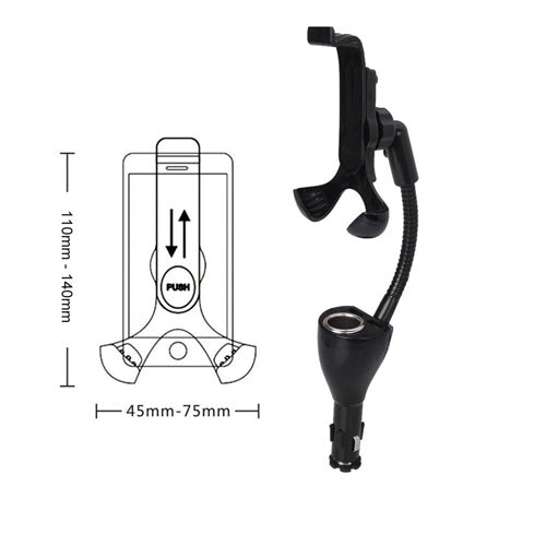 Car holder and dual charger for most smartphones. Flexible Arm. Over-current protection. High-quality PC + ABS Material. Non-slip feet keep the phone stable in the bracket. Modern design with adjustable gooseneck rotation of 360 degrees. Adjustable to both Portrait and Landscape. IMPORTANT NOTE: ONLY MICROUSB CABLE INCLUDED. NO Type-C or iPhone CABLE. YOU NEED TO USE YOUR OWN USB CABLE FOR IPHONE or TYPE-C PHONES.Share