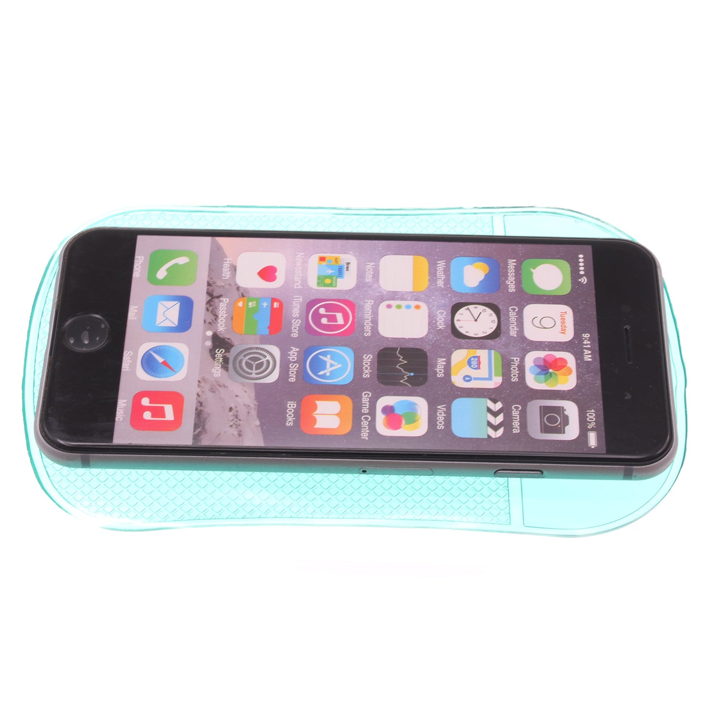 Hold all your digital devices (such as sunglasses, mobile phones, MP3, PDA, CD players, coins, etc) securely on the dashboard without shaking or tumbling. Sticky Pad holds your cell phone and other belongings to your dash in the car. Sticky Pad is an anti-slip mat that clings to your dashboard or center console and clings to anything that's placed on it. With the Sticky Pad, your cell phone, sunglasses or anything that's placed on the Sticky Mat will not slide off. Sticky Mat does not use any kind of adhesive or magnet and can be place in your car, truck, SUV, boat or airplane. Sticky Pad leaves no residue, is reusable and can be washed when it gets dirty. Note: This pad is compatible with soft vinyl surfaces. Avoid use on surfaces that have a lacquered finish (i.e. wood and some leather). Also avoid use on cars with hard or painted plastic dashes.Compartment doors or other painted surfaces Clean the surface well before applying STICKY MAT. When the pad becomes dusty and begins to lose it's stickiness just wash and pat dry and the STICKY MAT will be as sticky as when it was new. You will be shocked at how strong this sticky mat is. NOTE: This will NOT hold your phone if your phone has a silicone or leather case type of case on it.Share
