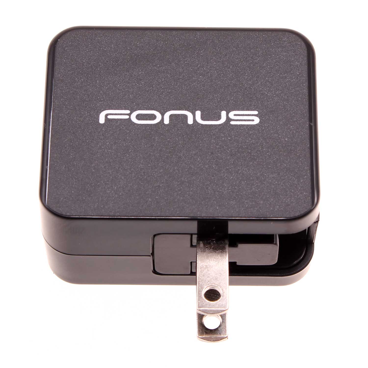 - Fonus 17W 3.4Amp 2-Port Compact Rapid USB Home Wall Charger with Smart Detect. Folding Prongs.