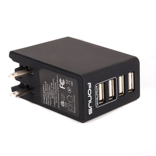 - Fonus 34W 6.8 Amp 4-Port Compact Rapid USB Home Wall Charger with Smart Detect. Folding Prongs.