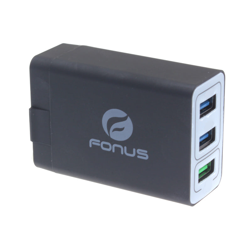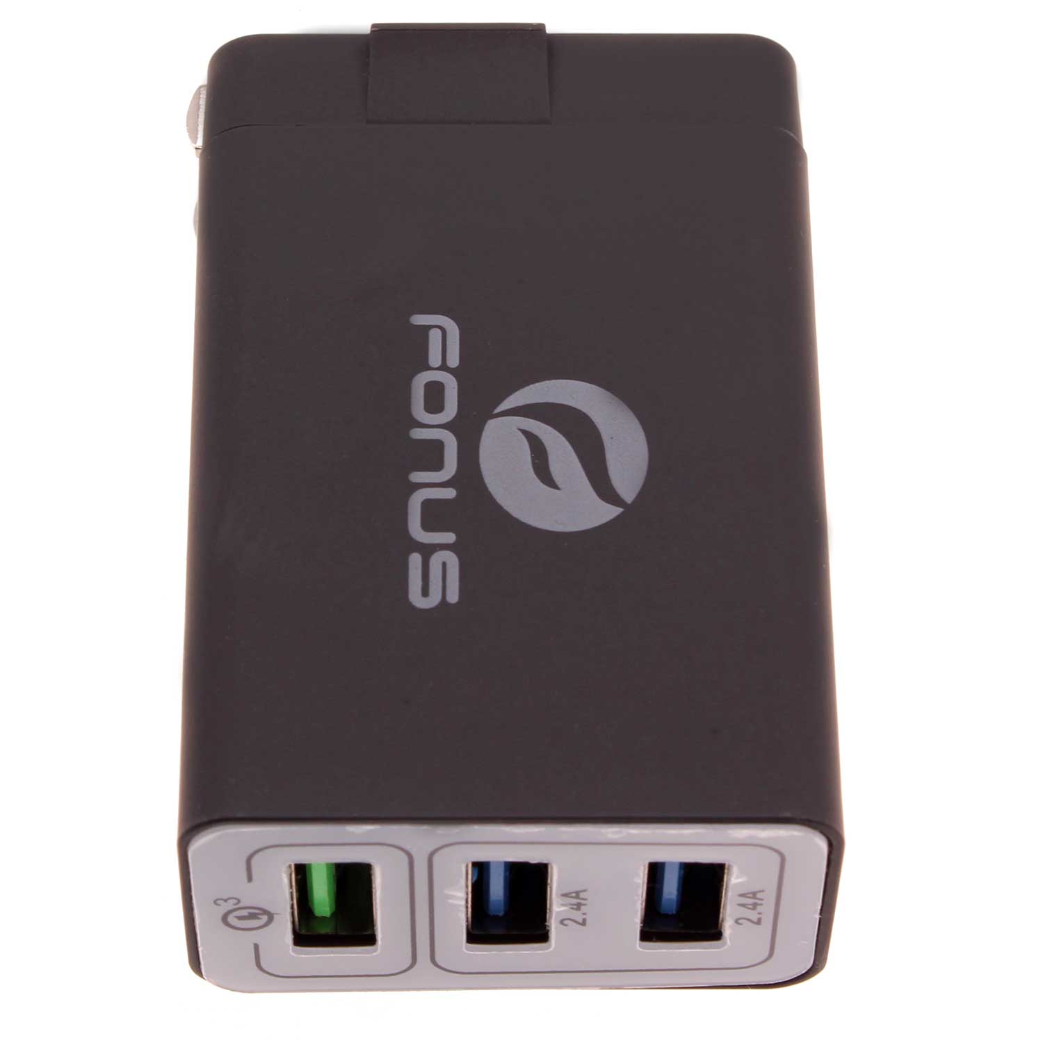 - 3-Port USB Charger with One QC Port and Two 2.4A Port. Fast Charge technology. Reduces charging time up to 75% compared to conventional chargers.